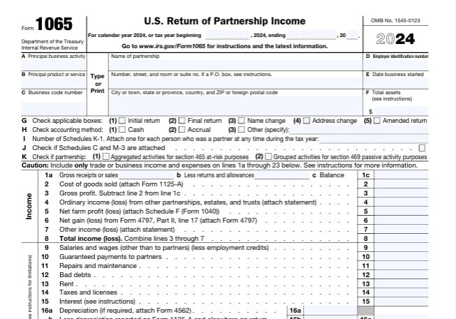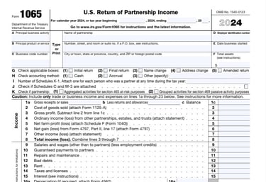 Partnership or multi-member LLC tax return. Generates Schedule K-1 for each partner.