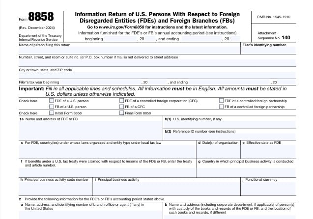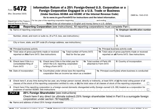 Required for corporations or LLCs with 25%+ foreign ownership; reports related-party transactions.